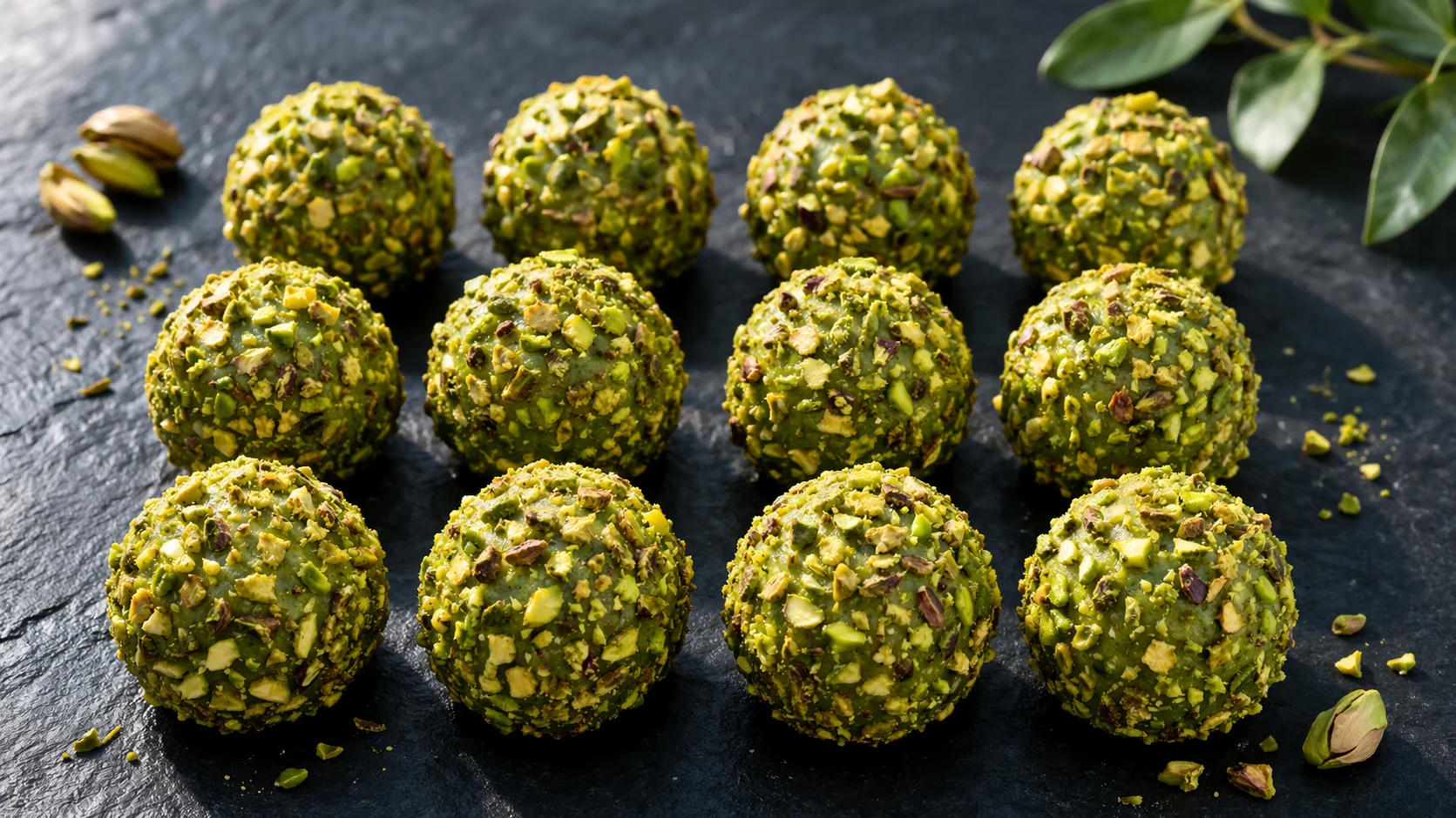 - Intensifier la couleur pistache - Ajoutez une pincée de spiruline en poudre dans la pâte pour renforcer la couleur verte naturellement, sans altérer le goût si vous ne dépassez pas 1 g. Cela donne aux boules une couleur vive même avec des pistaches moins fraîches.
