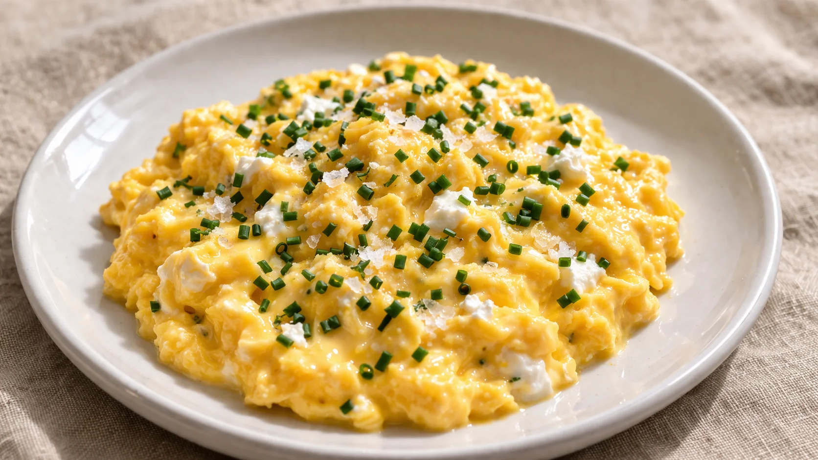 Les œufs brouillés, c'est l'un des plats les plus simples et les plus massacrés de la cuisine du quotidien. Trop souvent cuits à feu vif, retournés à la spatule comme une crêpe fatiguée, servis secs et caoutchouteux. La version au fromage frais corrige tout ça : une cuisson lente à feu doux, une spatule souple, du fromage frais incorporé hors du feu, et vous obtenez des œufs soyeux, fondants, avec 24 g de protéines par portion et une texture qui justifie amplement de se lever 10 minutes plus tôt le matin.
