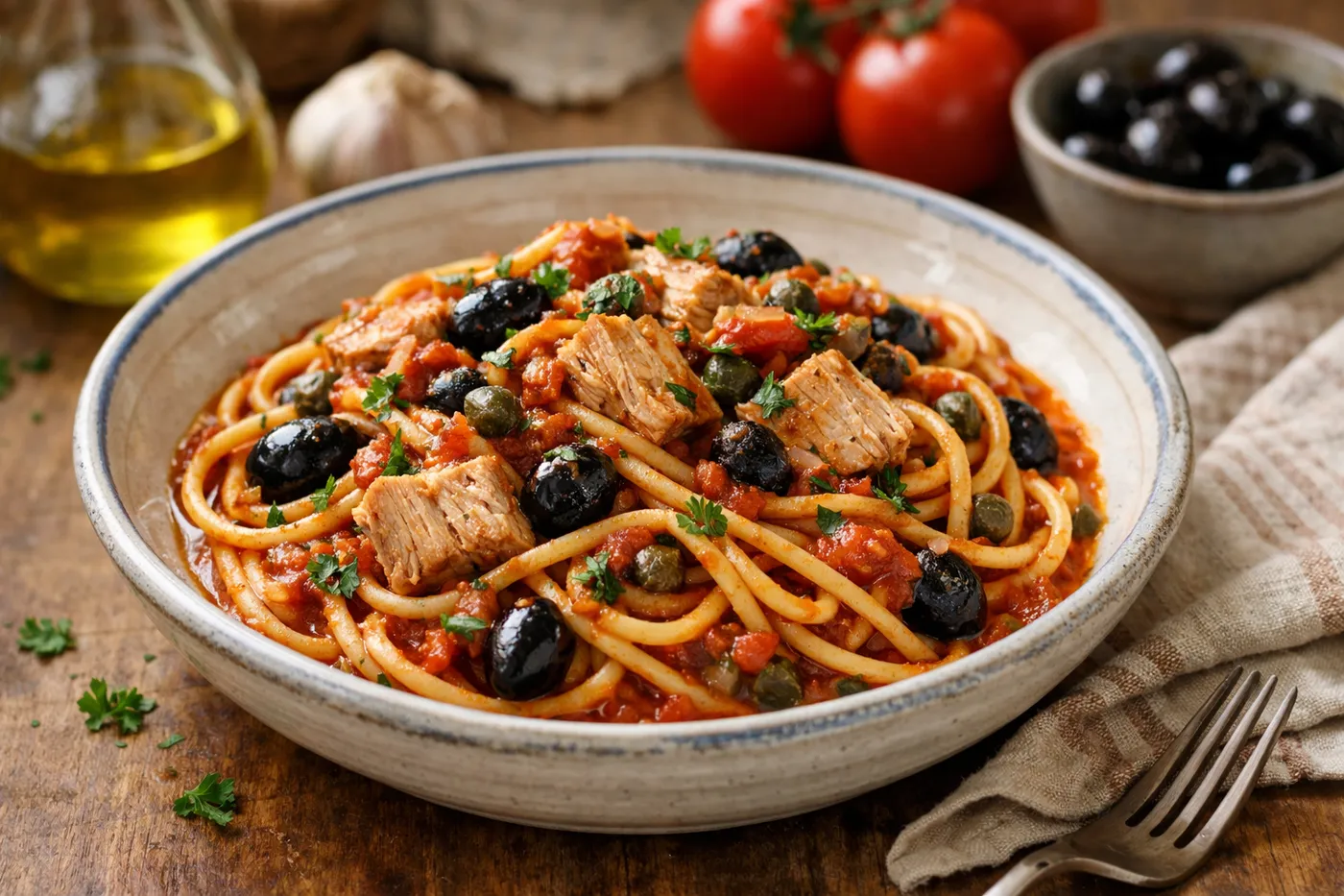 Pâtes à la Puttanesca et Thon – Recette Protéinée Méditerranéenne